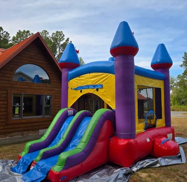 This commercial grade bounce house has two parts. Bounce house with two lane slide and detachable pool.