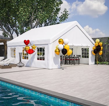 Dimensions: 20 ft X 20 ft X 10.5ft (Peak) / 6.5ft (Door) H